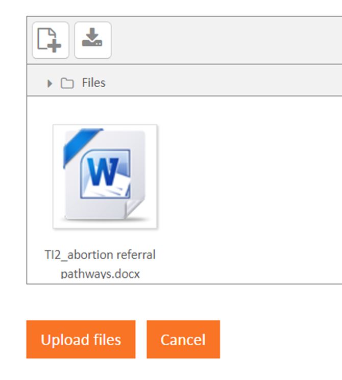 Click on the orange upload files button to proceed back to the screen where you originally uploaded the files. On the screen which opens, you will see a centre staging area with the files which are currently uploaded which should look like the below.